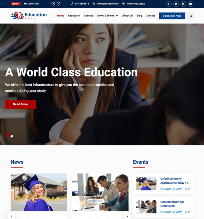Education Soul is a Simple and Clean Education WordPress Theme with a pleasant feel. It is very easy to use for all types of educational institutions like colleges, universities, schools, and different other education-based websites. Although the theme is focused on educational purposes, it will be fit other business and corporate fields also. It is highly customizable with powerful Theme Options based on Customizer API. Several custom sections are available to give your home page an attractive look. It comes with several features to make a user-friendly, interactive and visually stunning website. This theme is responsive, cross-browser compatible and translation ready.
